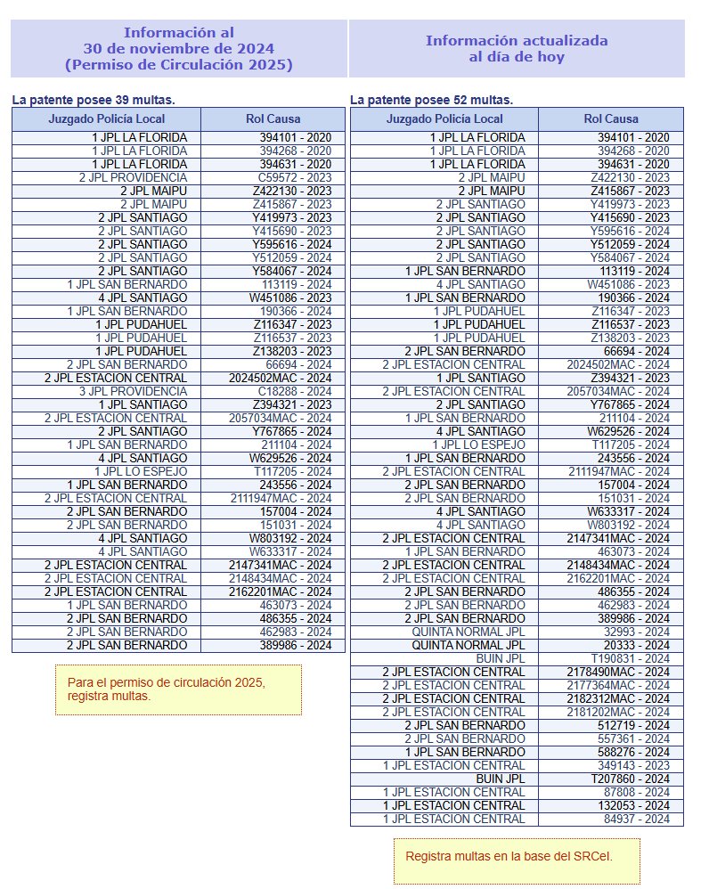 La publicación fue más allá y de acuerdo a lo revisado en el Registro Civil el vehículo de Cortés registra 52 infracciones sin pagar, todas por transitar sin dispositivo por una autopista concesionada. Cada multa sobrepasa los 73 mil pesos.