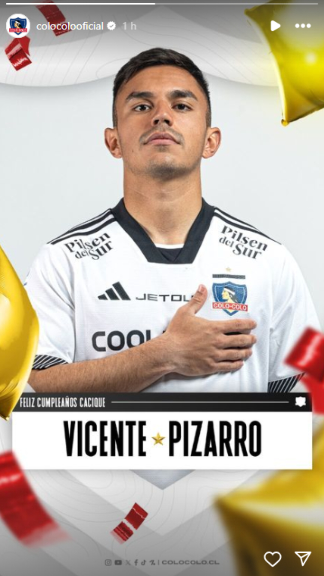 Colo Colo aprovechó este martes 5 de noviembre para enviar un saludo al jugador Vicente Pizarro, quien se encuentra de cumpleaños.