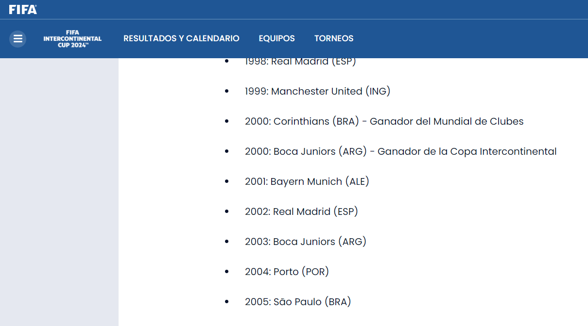 Con la renovada Copa Intercontinental en marcha, la FIFA causó revuelo con el listado de clubes campeones del mundo en su sitio web oficial, que desconoció cuatro títulos del antiguo trofeo disputado entre los monarcas de Sudamérica y Europa.