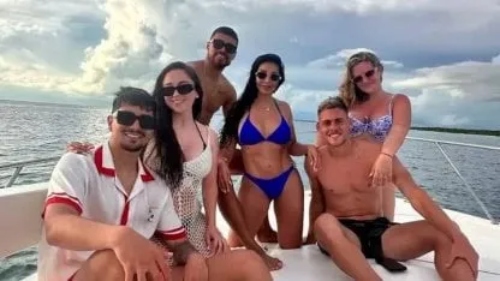 Los jugadores, todos con sus respectivas parejas, se fotografiaron en un yate en una imagen que Díaz subió a sus redes sociales.