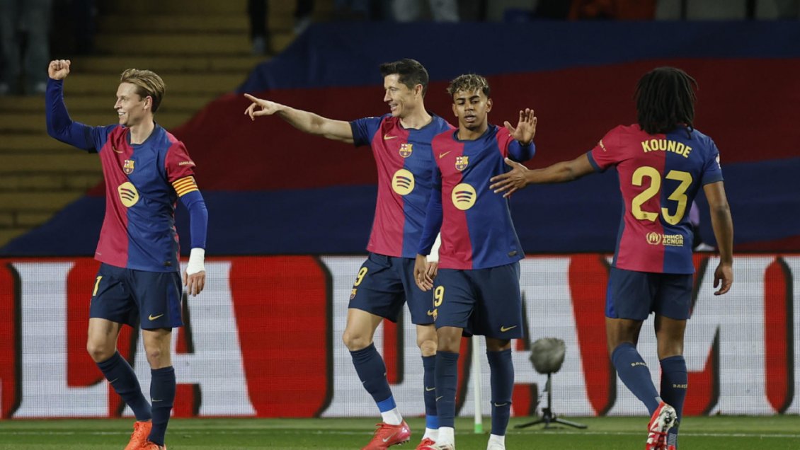 Frenkie de Jong (3') y Ferrán Torres (8') adelantaron rápidamente al equipo de Hansi Flick, y Raphinha, antes del cuarto de hora, marcó el 3-0 parcial, con una asistencia de Fermín López, autor de los otros dos tantos del club catalán en la primera parte.