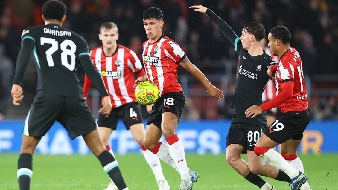 Southampton, del chileno Ben Brereton, dijo adiós a la Copa de la Liga inglesa tras caer ante Liverpool por 2-1 en condición de local por la ronda de cuartos de final.