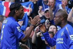 Didier Drogba y William Gallas dos pilares del tercer título en la historia de Chelsea celebran la corona. (Foto: EFE)