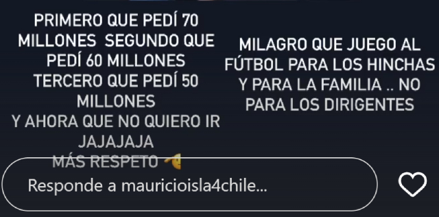 En la misma publicación, agregó: "Primero que pedí 70 millones, segundo que pedí 60 millones, tercero que pedí 50 millones y ahora que no quiero ir. Jajaja, más respeto".