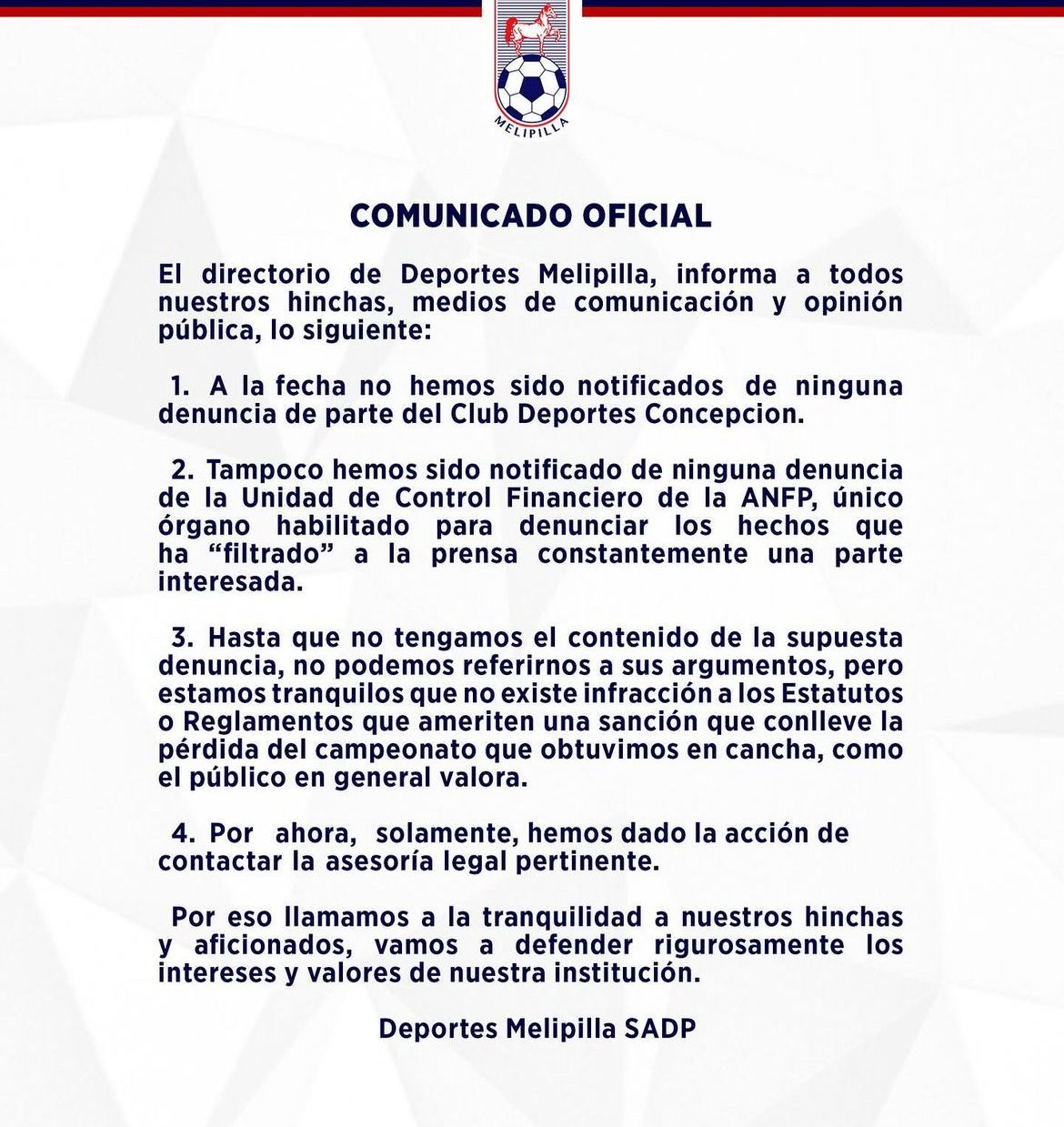 En un álgido cierre de temporada, Deportes Melipilla se refirió a la situación que levantó las dudas sobre su ascenso luego de que desde Concepción se denunciasen deudas previsionales en el plantel que logró su coronación durante la Segunda División en 2024.