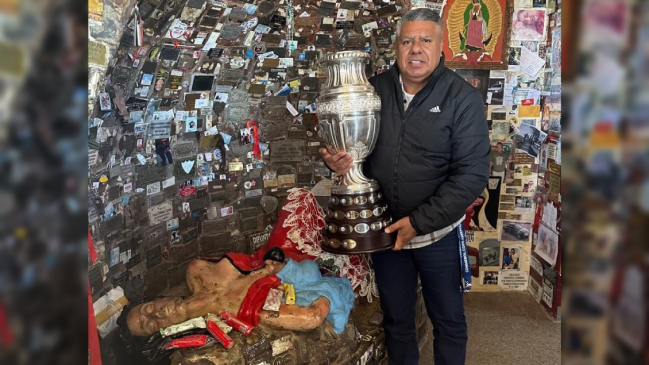 "Chiqui" Tapia llevó el trofeo de la Copa América al templo de la Difunta Correa