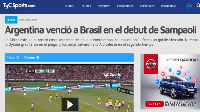 Así reaccionó la prensa en Argentina y Brasil tras la victoria de los trasandinos por 1-0 ante el "cratch" en el estreno de Jorge Sampaoli como entrenador de la "albiceleste".