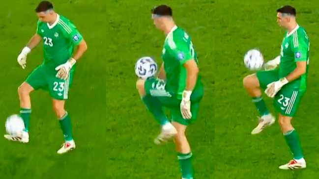 Cerca del minuto 78 de partido, el "Dibu" recibió un pase hacia atrás de Nicolás Otamendi y en vez de salir jugando, aprovechó de dominar el balón y hacer un par de jueguitos ante la pasividad en ataque de su rival.