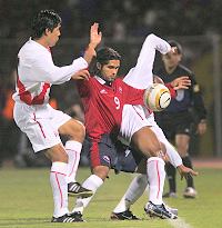 El mediocampo defensivo chileno, compuesto por Joel Reyes y Rodrigo Meléndez, controló bien el juego peruano, pero los incásicos comenzaron a buscar por las bandas y las pelotas detenidas se transformaron en un dolor de cabeza para los nacionales.