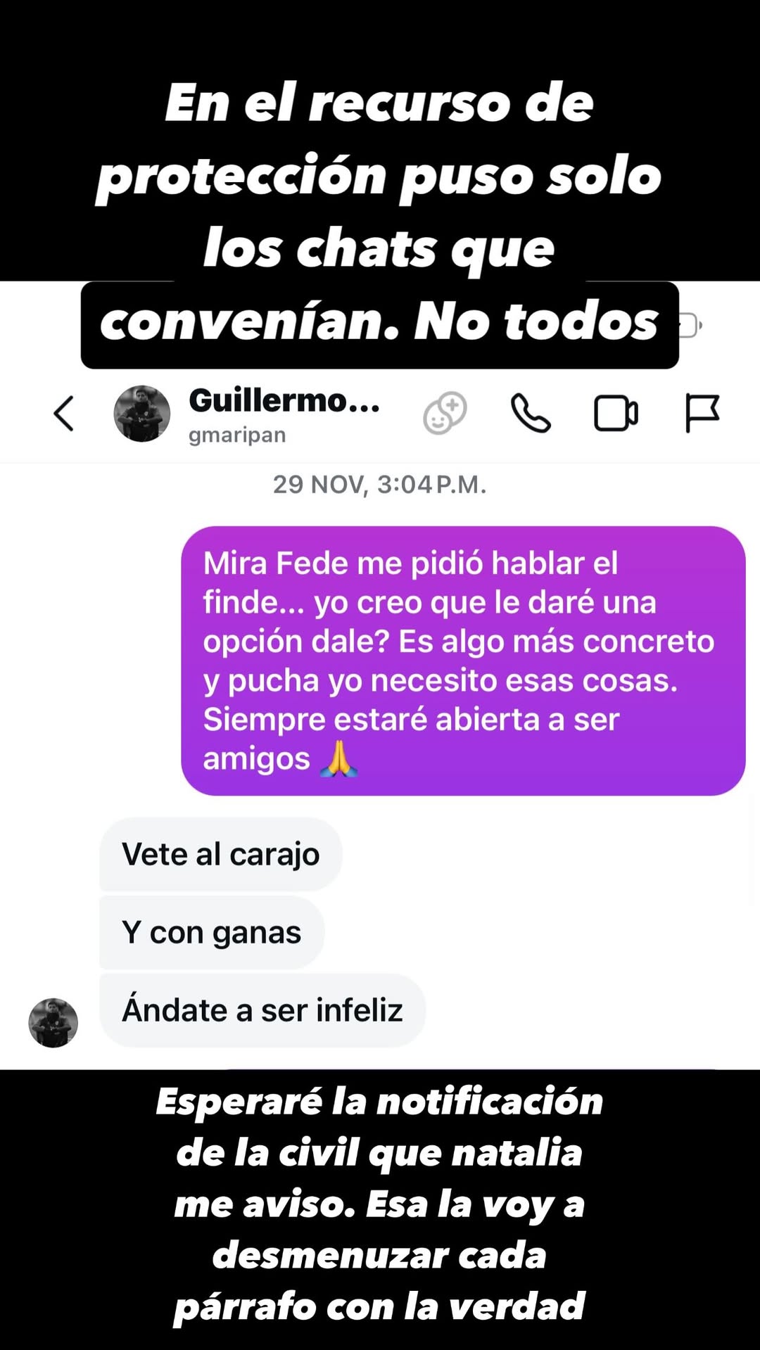 En primera instancia, Castillo subió un audio de Natalia Casas-Cordero señalando que ella filtró un video íntimo por pedido de Maripán, situación que está en proceso judicial y que el futbolista desmintió, junto con iniciar acciones legales por hostigamiento.