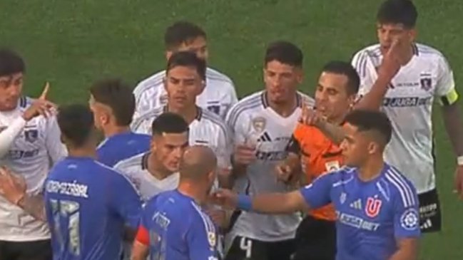 Producto del descontrol en la jugada, el centrocampista "laico" le dio un empujón al capitán de los "albos", quien luego también vio su segunda amonestación.