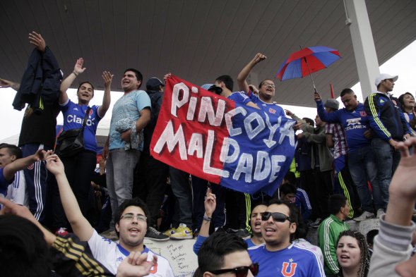 Hinchas de U. de Chile presentaron bandera gigante en el Parque O'Higgins