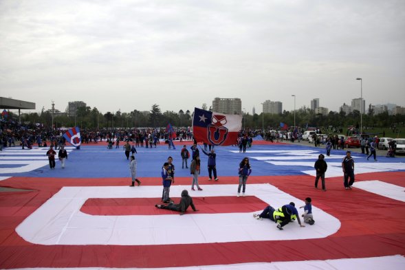 Hinchas de U. de Chile presentaron bandera gigante en el Parque O'Higgins