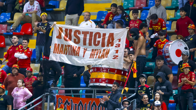 En el margen del duelo que los vio hacer de locales ante Ñublense por la séptima fecha, un sector de la barra "Furia Roja" levantó una tela con el mensaje "Justicia por Martina y Mylan".