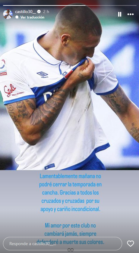 El delantero Nicolás Castillo publicó un mensaje a modo de despedida de Universidad Católica, luego que no entró en la convocatoria del partido contra Coquimbo Unido por la última fecha del Campeonato Nacional.