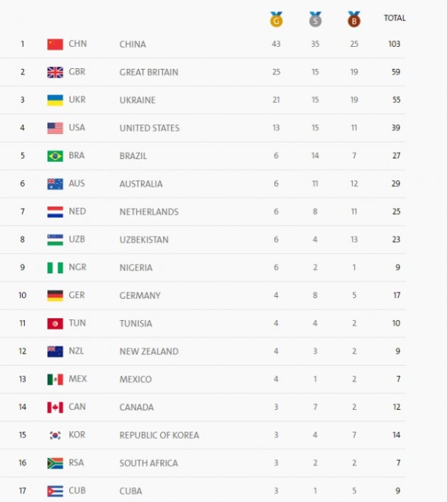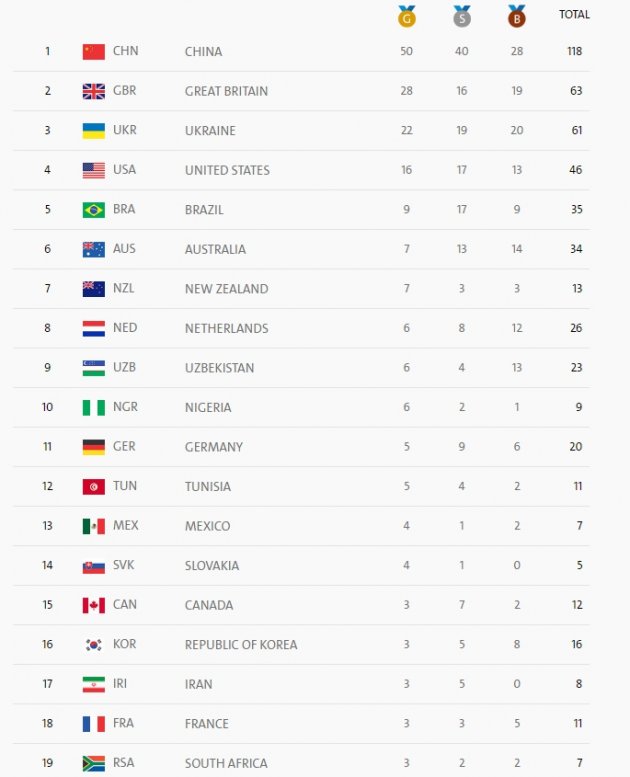20160912174812 | Así está el medallero a esta hora, con China como amplio dominador.