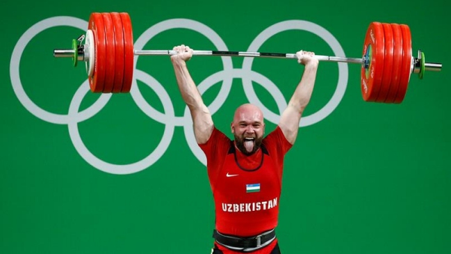 Pesista uzbeko Ruslan Nurudinov alzó el oro en la categoría 105 kilos