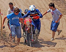 Salminen vio cómo su moto comenzaba a fallar cerca de la meta en la última especial. Se había quedado sin disco de embrague en plena subida, pero espontáneamente tres personas del público lo ayudaron a cumplir el recorrido.
