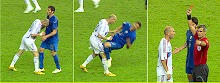 ![]() Secuencia inolvidable del momento del cabezazo de Zidane a Materazzi. (Foto: EFE) |