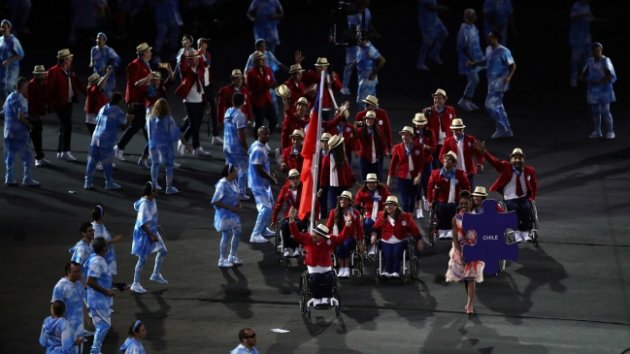 ¡Es el turno de Chile %uD83C%uDDE8%uD83C%uDDF1 ! Desfilando en la #CeremoniaDeApertura de los #JuegosParalímpicos #Rio2016 pic.twitter.com/fZ9xkaMs1f