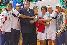 Chile levanta el trofeo de 2004 en Düsseldorf, cuando obtuvo el bicampeonato. (Foto: www.arag-world-team-cup.com) |