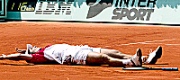 Fabrice Santoro celebra tendido sobre la arcilla parisina su triunfo sobre Clement. (Foto: EFE) |