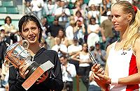 La morena moscovita recibió la copa que la certifica como campeona de Roland Garros de manos de Jackson Richardson, capitán de la selección de balonmano de Francia, dos veces campeón del mundo (1995 y 2001) y próximo abanderado de la delegación gala en los Juegos Olímpicos de Atenas.