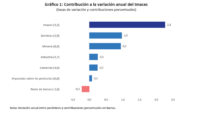 El resultado del Imacec se explicó por el crecimiento de los servicios y la minería, de acuerdo con el instituto emisor.