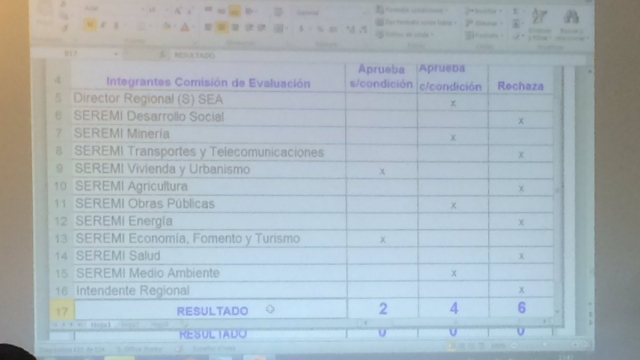 La autoridad regional agregó que "la proposición que hace en términos ambientales de compensación o reparación no son apropiadas ni suficientes para asegurar, como es debido, el derecho a vivir en un medio ambiente libre de contaminación, la protección del medio ambiente, la preservación de la naturaleza y la conversación del patrimonio ambiental consagrados en la Constitución Política de la República. Por ello, mi voto es en contra".