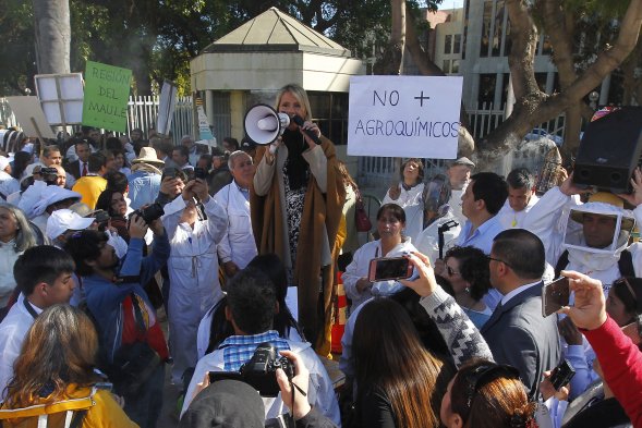 Los apicultores marcharon hacia el Congreso Nacional, en Valparaíso, para alertar sobre la paulatina desaparición de las abejas y exigir, de paso, el proyecto de Ley Apícola y la erradicación de los insecticidas neonicotinoides y agroquímicos nocivos.