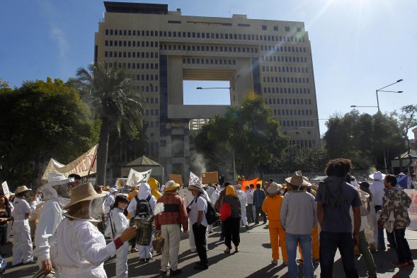 Los apicultores marcharon hacia el Congreso Nacional, en Valparaíso, para alertar sobre la paulatina desaparición de las abejas y exigir, de paso, el proyecto de Ley Apícola y la erradicación de los insecticidas neonicotinoides y agroquímicos nocivos.