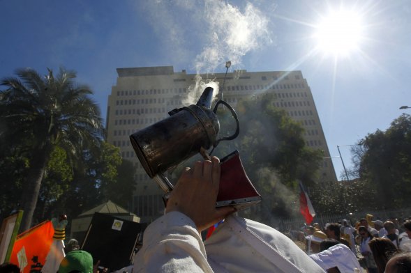 Los apicultores marcharon hacia el Congreso Nacional, en Valparaíso, para alertar sobre la paulatina desaparición de las abejas y exigir, de paso, el proyecto de Ley Apícola y la erradicación de los insecticidas neonicotinoides y agroquímicos nocivos.
