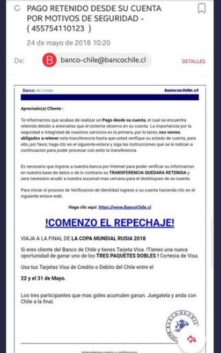 Pero, a diferencia de los intentos de externos, en este caso se trata de e-mails que vienen desde direcciones electrónicas del propio Banco de Chile, lo que da cuenta -detallaron fuentes a Cooperativa- habla de un ingreso de personas no autorizadas a sus servidores.