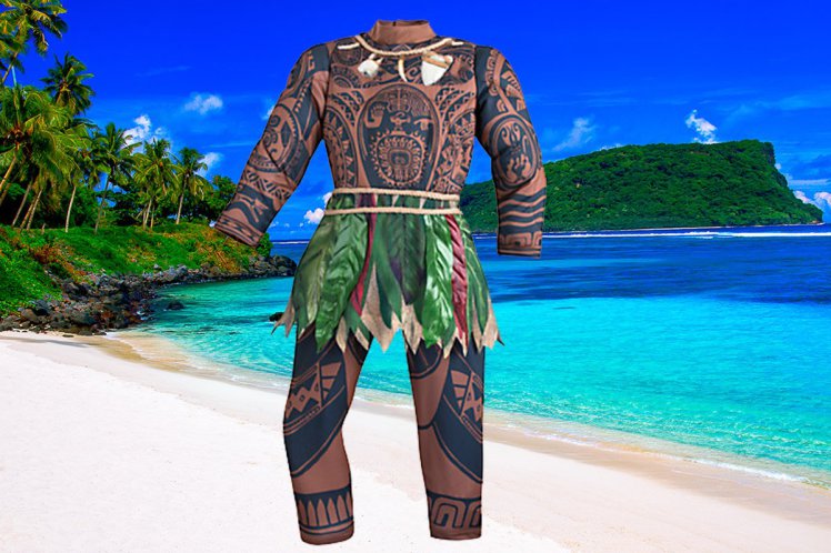 El traje consiste en la piel cubierta de tatuajes polinésicos de "Maui", uno de los protagonistas de la producción y cuya voz está a cargo de Dwayne Johnson.