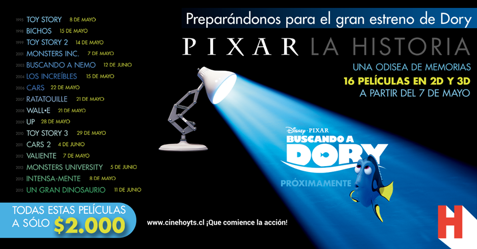 La cadena Cine Hoyts realizará un ciclo con películas clásicas de los estudios Pixar, el cual se extenderá desde este sábado 7 de mayo al 11 de junio.