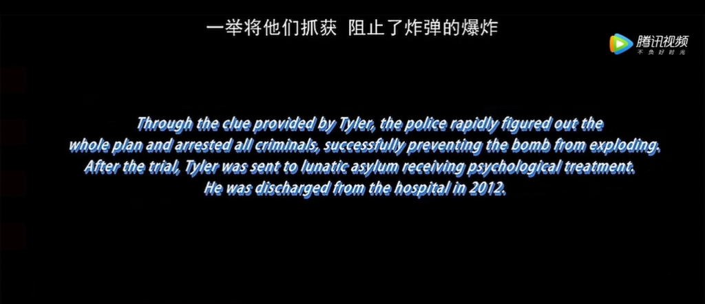"A través de la evidencia proporcionada por Tyler (Brad Pitt), la policía rápidamente descubrió todo el plan y arrestó a todos los criminales, previniendo con éxito la explosión de bombas", asegura esta edición de "El Club de la Pelea".
