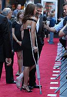 Clooney, que sufre dolores a causa de la rotura de una costilla, apareció, además, con la mano izquierda vendada.