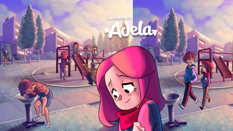 "La decisión de Adela" es un cómic interactivo que propone a los jugadores elegir un curso de acción frente a diversos escenarios posibles, los que a medida que se desarrolla la historia inciden en el futuro académico y laboral de una joven estudiante que se enfrenta a los estereotipos de género en el ámbito científico y tecnológico.