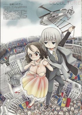 La editorial japonesa Ikaros Publications lanzó el libro "Nyotaika!! Sekai no Dokusaisha Retsuden", el cual contiene una serie de ilustraciones que muestran cómo lucirían los dictadores del mundo como personajes femeninos en versión "manga". En la imagen, Adolf Hitler (Alemania).