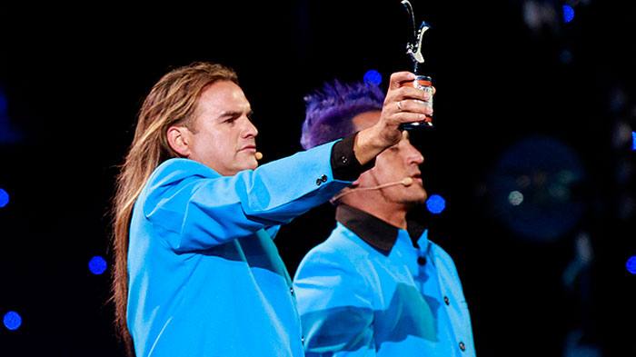 Tópicos: Entretención | Festival de Viña Locos del humor debutó sobre la Quinta Vergara Publicado: Lunes, 24 de Febrero de 2014 4 de 4 El dúo fue el primer número de humor de la 55° versión del festival y se llevó dos antorchas y una Gaviota de plata. El dúo fue el primer número de humor de la 55° versión del festival y se llevó dos antorchas y una Gaviota de plata. Agencia Uno