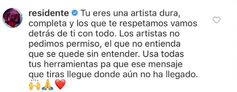 A través de la misma plataforma, el puertorriqueño Residente también expresó su respaldo a la rapera y sostuvo que "los artistas no pedimos permiso, el que no entienda que se quede sin entender".