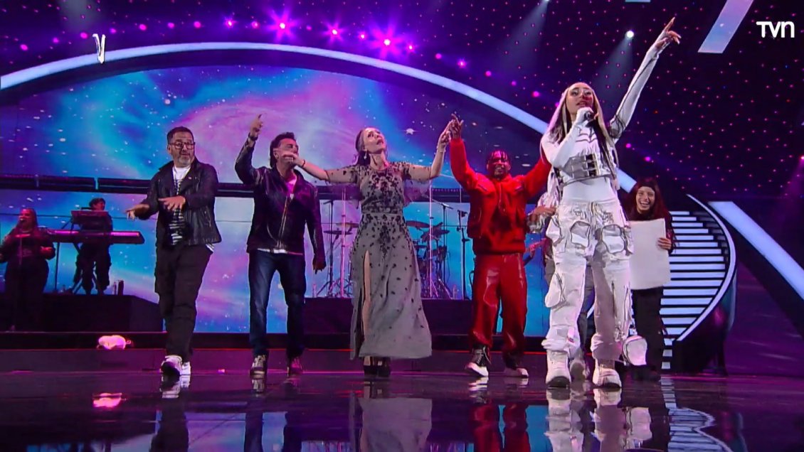 Durante la interpretación de "Otra noche" la argentina invitó a sus compañeros del jurado, incluyendo a la baterista de Los Jaivas, quien presidía a este grupo.