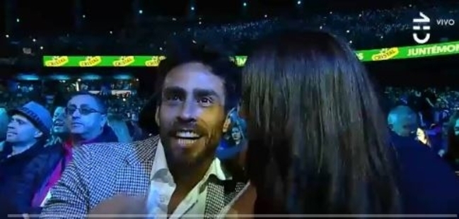 En un momento, cuando el cantante se puso romántico con "Abrazar la vida", la pareja se dio un especial beso.
