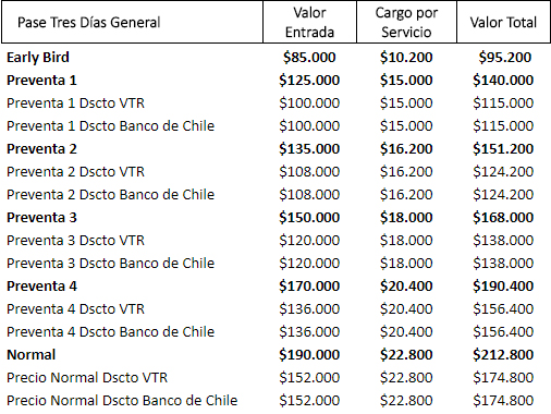 El pase para los tres días de festival se seguirá encareciendo a medida que se vendan los tickets, con un precio tope de $212.800.