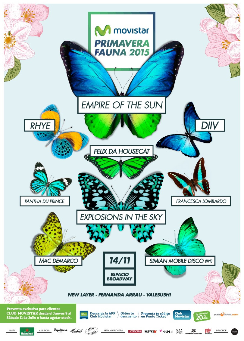 Movistar Primavera Fauna se realizará el 14 de noviembre en las piscinas del Espacio Broadway y las entradas estarán a la venta a través de Puntoticket en una preventa exclusiva desde esta medianoche, hasta este sábado 11 de Julio, para clientes Movistar con un 20% de descuento en el valor.