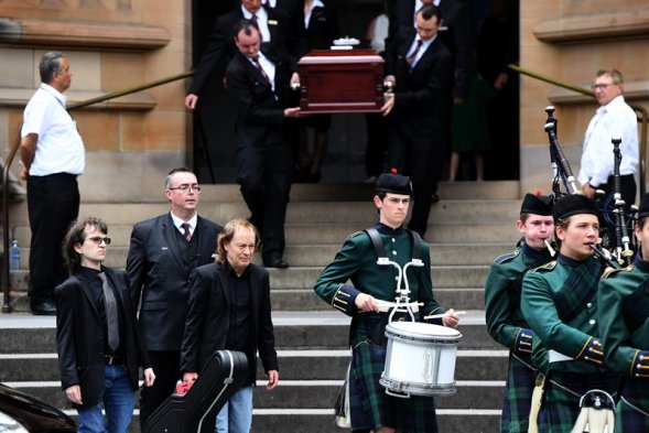 Familia y amigos despiden, en la Catedral de Santa María de Sidney, al cofundador y guitarrista de AC/DC, Malcolm Young, quien murió a los 64 años el pasado 18 de noviembre de 2017.