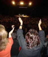 Minutos antes del inicio del concierto llegaron por separado el Presidente Ricardo Lagos y su señora Luisa Durán por un lado; y la abanderada de la Concertación Michelle Bachelet por otro, quienes fueron largamente aplaudidos por las más de tres mil personas que repletaron el Court Central del Estadio Nacional.