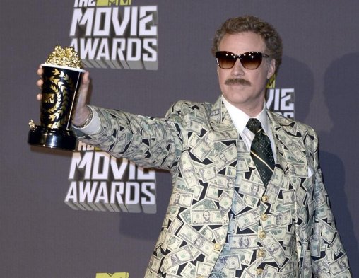 Ferrell invitó a estar con él delante de las cámaras a una mujer y tres niños asiáticos para gastar una broma sobre su familia y fue interrumpido por la actriz Aubrey Plaza de la serie "Parks and Recreation", que subió al escenario a mitad de su discurso y trató de llevarse su trofeo.