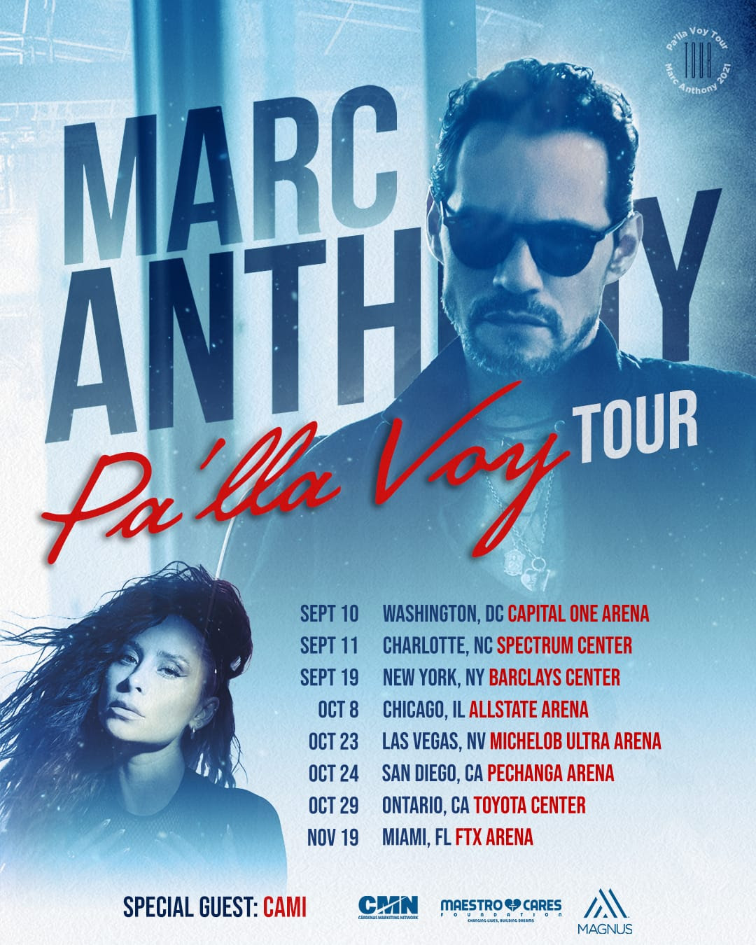 La cantante Cami será la artista invitada de la gira que Marc Anthony realizará por Estados Unidos entre septiembre y noviembre de este año.