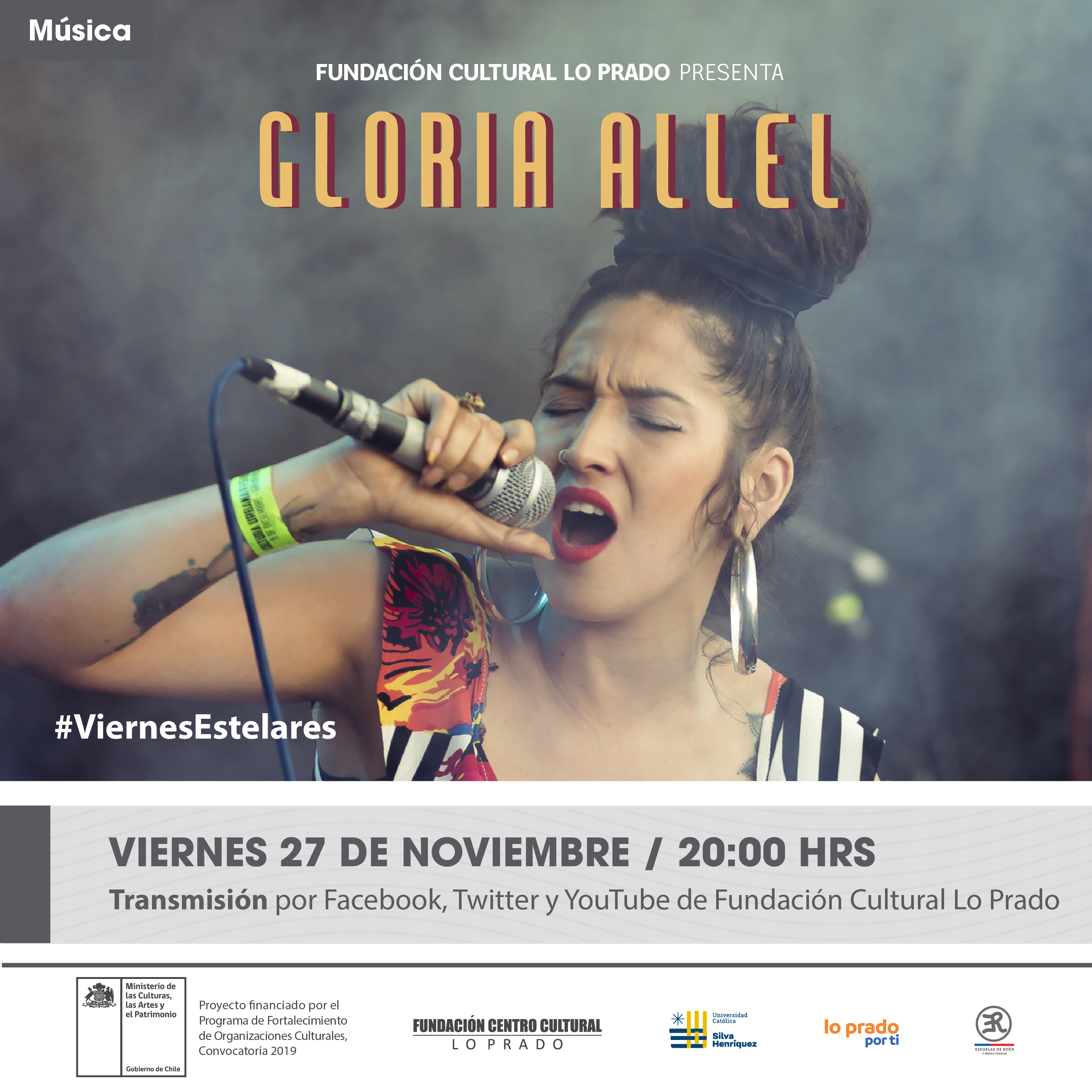 La cantante chilena Gloria Allel, conocida por haber participado del programa "The Voice", lanzará su nuevo EP "Aiel" con un concierto gratuito que se transmitirá vía streaming este viernes 27 de noviembre en el marco de los conciertos de la Fundación Cultural Lo Prado.